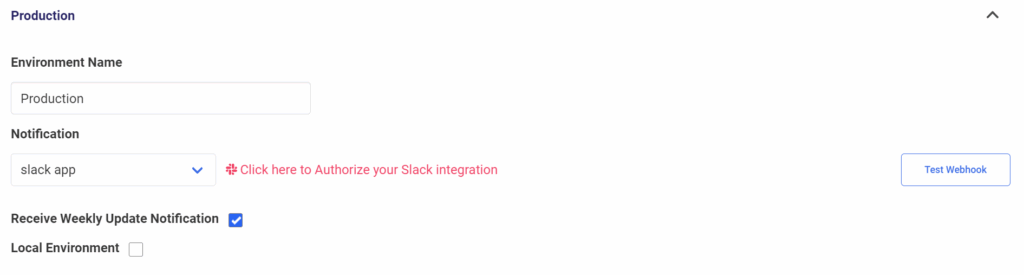 You’ll also receive a weekly report for each environment. If you want to disable that, uncheck Recieve Weekly Update Notification